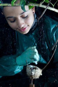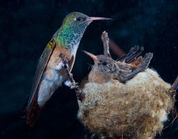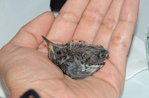 Hand-feeding a newborn hummingbird on its first day of life