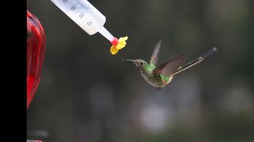 With sugar water available ad libitum, hummingbirds reduce natural foraging on flowers and insects. Since feeding naturally requires visits to more than 1,500 flowers per day, they prefer the effortless access offered by feeders.